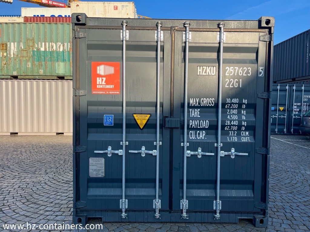 Dimensions et capacité standard Ces dimensions offrent suffisamment d’espace pour une variété d’applications. Le conteneur a une capacité de charge d’env. 28 300 kg, ce qui en fait le choix idéal pour le transport de charges lourdes. Le volume total du conteneur est d’environ 33,2 m³, ce qui permet une utilisation efficace de l’espace. Quantité : 33,2 m³ Hauteur : env. 2 250 kg Capacité de charge : maximum 28 260 kg Longueur À l’extérieur environ. 6 058 mm À l’intérieur environ. 5 898 mm Large À l’extérieur environ. 2 438 mm À l’intérieur environ. 2 350 mm Hauteur À l’extérieur environ. 2 591 mm À l’intérieur environ. 2 390 mm Dimensions de la porte: Hauteur environ. 2 260 mm Largeur environ. 2 340 mm