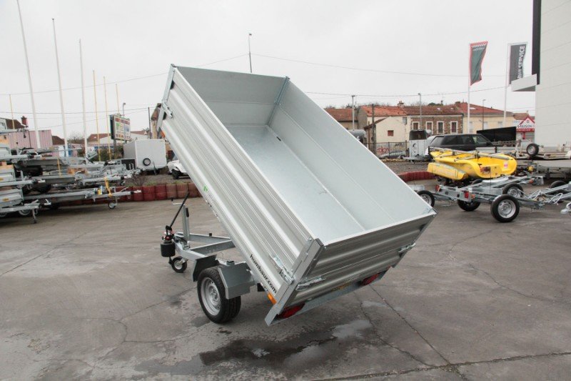 Reboque Basculante Hidráulico HUMBAUR 3053 HUK 132314 Reboque Basculante Hidráulico HUMBAUR 3054 HUK 152314 Reboque Basculante Hidráulico de Eixo Simples HUMBAUR 3053 Reboque Basculante Hidráulico com Travão HUMBAUR 3054 Gama de Reboques Basculantes Hidráulicos HUMBAUR HUK Qualidade Alemã Renovação, simplificação e reforço da gama de reboques basculantes hidráulicos Humbaur em 2018. Não é fácil, quando se é o fabricante número um de reboques basculantes, reinventar-se sem perder a essência. O ADN dos reboques basculantes Humbaur é o de um produto profissional, com acabamentos exemplares, piso em aço galvanizado, laterais em alumínio, chassis reforçado, características de segurança (válvula de retenção e, nos basculantes elétricos, sistema anti-tombamento) e mais extensões e acessórios do que outros modelos. A nova gama reforça todos estes pontos. Os basculantes hidráulicos compactos HUMBAUR 3053 HUK 132314 e 3054 HUK 152314 seguem este ADN com um equipamento de série abrangente: Roda guia automática reforçada montada no centro Laterais em alumínio que abrem e são amovíveis sem ferramentas, com fechos reforçados Piso de metal galvanizado reforçado Chassis galvanizado a quente Bomba hidráulica manual, cilindro de 3 fases Guarda-lamas galvanizados para limitar a projeção de água 4 anéis de ancoragem integrados no perfil que não interferem com o carregamento. Conjunto de eixo ALKO (2051) e comando de travagem. Conector de 13 pinos. Conjunto homologado e em conformidade com as normas em vigor. Especificações técnicas dos basculantes hidráulicos HUMBAUR 3053 e 3054 Peso Bruto Total (PBT): 3053 = 1300 kg 3054 = 1500 kg Possíveis reduções de capacidade: 1400 / 1300 / 1200 / 1100 / 1000 / 900 / 750 kg Peso em vazio: 400 kg 1 Eixo com travões 1350 kg (3053) / 1500 kg (3054) com rodas inferiores 2 Rodas reforçadas 195/50 x 13 (112×5 ET 30) Dimensões úteis: Comprimento 2300 mm Largura 1400 mm Altura lateral 300 mm Volume: 1 m³ Altura de carga 640 mm Dimensões totais: Comprimento 3650 mm x Largura 1540 x altura 950 Ângulo de basculamento da balde: 45° Opcionais para as caixas de carga HUMBAUR 3053 HUK 132314 e 3054 HUK 152314: Roda sobresselente Suporte para roda sobresselente Extensões laterais em alumínio + 350 mm Extensões em rede galvanizada + 620 mm, amovíveis e com abertura lateral Extensões em tela com estrutura em chapa de alumínio, + 620 mm, especialmente concebidas para arboristas. Suporte para escada Lona plana Lona alta, cor e altura à sua escolha até 1600 mm Tela de micro-malha Bomba elétrica combinada + bateria + bomba manual (esvazia e enche o mesmo depósito) Macacos estabilizadores traseiros Caixa de armazenamento Rampas de carregamento. Matrícula Outras opções disponíveis por encomenda