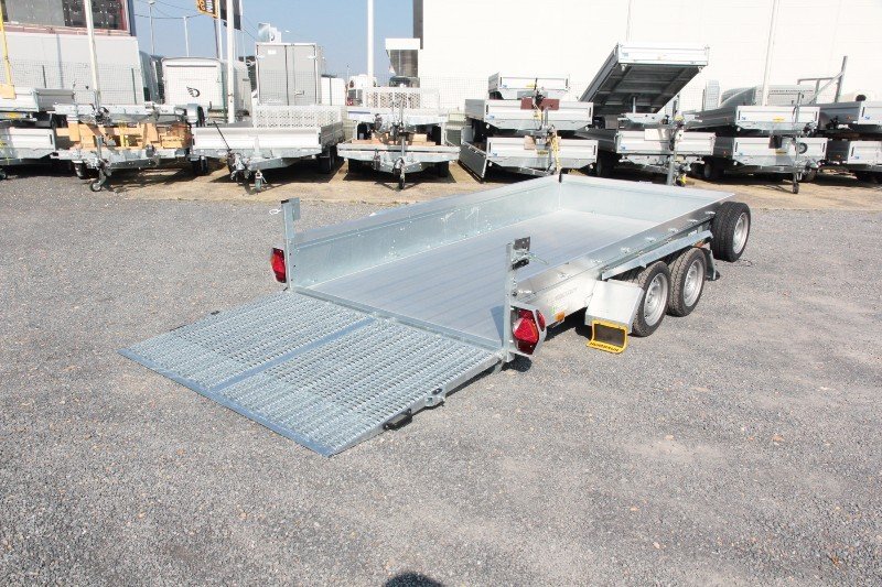 REBOQUE DE TERRA HUMBAUR 8245 SENKO 303718 REBOQUE DE TERRA HUMBAUR SENKO 303718 REBOQUE PARA EQUIPAMENTOS HUMBAUR 8245 SENKO 303718 REBOQUE PLATAFORMA HUMBAUR SENKO 8245 REBOQUE PARA LAVADORA DE CHÃO HUMBAUR SENKO 303718 A Humbaur é um fabricante alemão especializado em reboques para uso profissional. A sua linha de produtos é extensa, mas o REBOQUE DE TERRA SENKO é certamente o mais avançado e sofisticado tecnicamente para o transporte de empilhadores, plataformas, lavadoras de pavimentos e outros equipamentos que não conseguem transitar em subidas acentuadas. A Humbaur é um fabricante alemão especializado em reboques para uso profissional. A gama de reboques SENKO apresenta um sistema hidráulico que permite baixar a plataforma até ao solo, além de uma porta traseira de carga, minimizando a inclinação para 7°. O modelo aqui apresentado é o SENKO 8245 303718, com as seguintes especificações técnicas: Peso Bruto Total (PBT): 3000 kg Peso Vazio: 860 kg Dimensões Úteis: Comprimento: 3750 mm Largura: 1850 mm Altura das Laterais: 270 mm Altura de Carga (posição alta): 470 mm Altura da Porta Traseira: 1250 mm Inclinação Máxima (reboque baixado até ao solo, porta traseira aberta): 4% Dimensões Totais: Comprimento: 5500 mm Largura: 2480 mm Altura (porta traseira fechada): 1740 mm Dois eixos KNOTT de 1500 kg com sistema hidráulico para baixar o reboque até ao solo. 4 rodas 195/50 x 13 C (112×5 ET30) Guarda-lamas com abertura automática quando a plataforma é baixada até ao solo. Chassis galvanizado a quente. Barra de tração em V com roda jockey automática reforçada. Piso de madeira compensada antiderrapante de 18 mm. 10 pontos de amarração distribuídos por todo o reboque. Bomba hidráulica manual. Iluminação ASPOCK integrada de alto desempenho. Totalmente homologado e em conformidade com as normas em vigor. O reboque ilustrado inclui os seguintes opcionais: Piso de alumínio Mecanismo de inclinação com bomba elétrica independente Lona alta com arcos. Roda sobresselente e suporte. A gama de reboques HUMBAUR RASLESOL está também disponível em: 3 dimensões úteis e diferentes PBTs (Peso Bruto Total): 3000 x 1600 x 270 mm, PBT 3500 / 3000 / 2500 kg 3750 x 1850 x 270 mm, PBT 3500 / 3000 / 2500 kg 3990 x 1920 x 270 mm, PBT 3500 / 3000 kg Opcionais para os reboques HUMBAUR SENKO RASLESOL: Roda sobresselente. Suporte para roda sobresselente. Basculação hidráulica elétrica com bateria, auto-suficiente. Lona alta com arcos, altura (máx. 2200 mm) e cor à escolha. Piso em alumínio antiderrapante. Guincho e suporte, manual ou elétrico. Suporte para escada. Inscrição. Outras opções disponíveis mediante pedido.