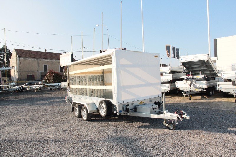 Marca: HUMBAUR Modelo: 8245 SENKO 303718 Peso Bruto Total (PBT): 3000 kg Peso em ordem de marcha: 860 kg Número de eixos: 2 Capacidade por eixo: 2 x 1500 kg Travões: Sim Dimensões internas: 3750 x 1850 x 270 mm Dimensões totais: 5500 x 2480 x 1740 mm