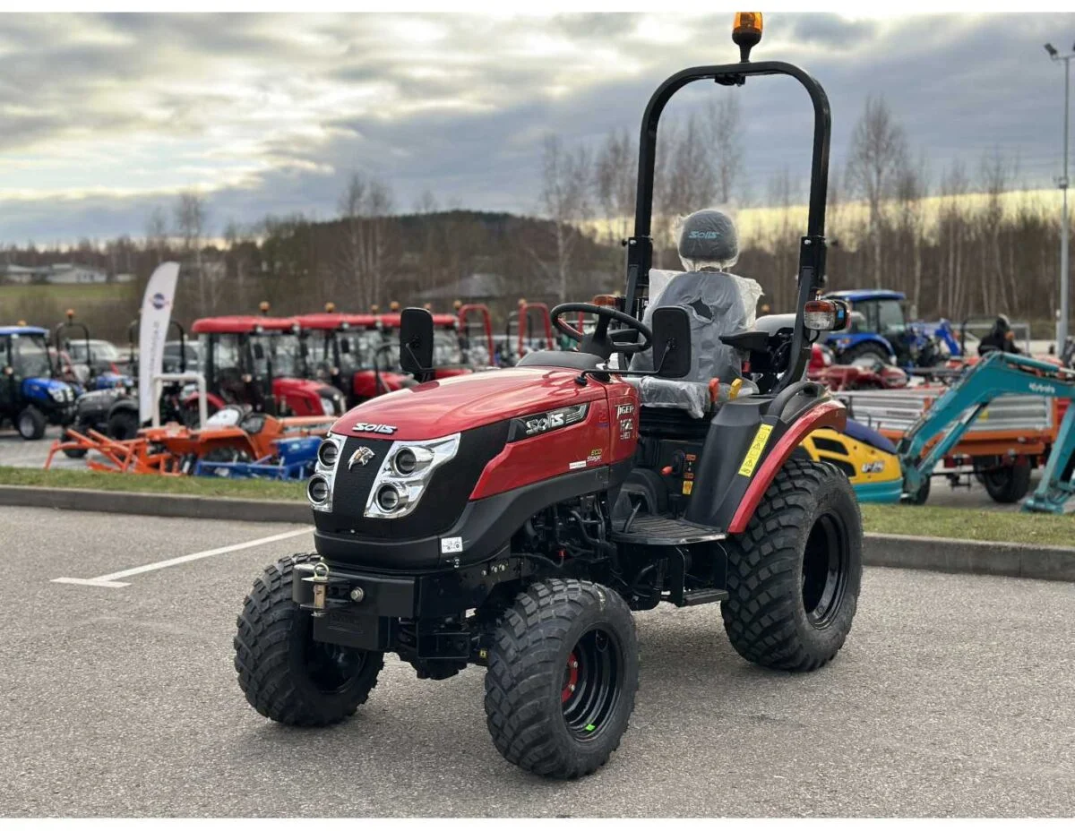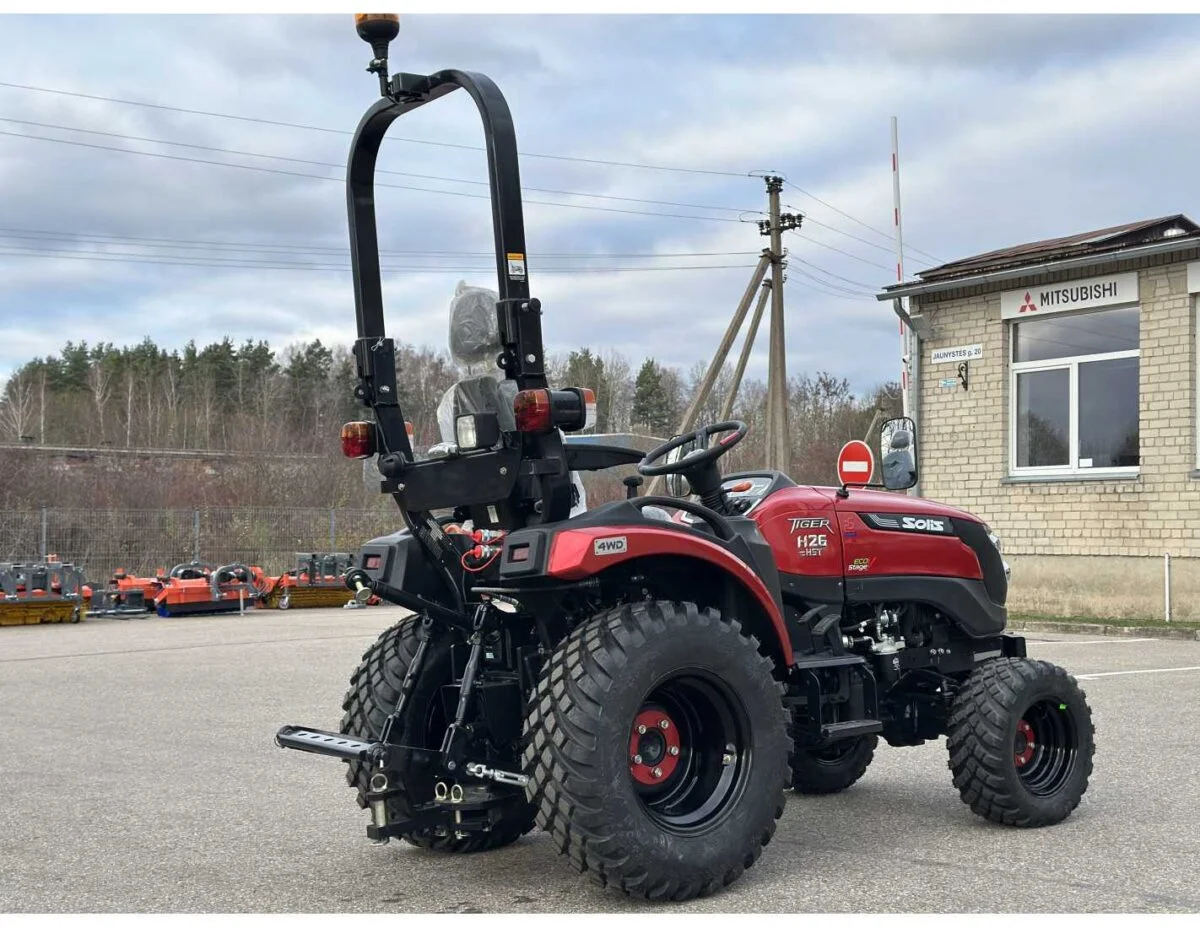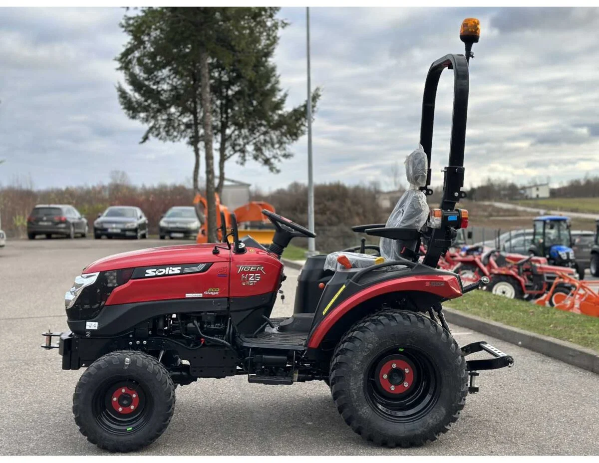 SOLIS 26 HST Edição Limitada Especificações do motor e transmissão: Motor: Mitsubishi S3L2.4 Potência de saída: 18,2 kW Número de cilindros: 3 Cilindrada do motor: 1318 cm³ Torque máximo: 75,2 Nm a 2200 rpm Transmissão: Tração integral Transmissão adicional: Hidrostática Bloqueio de diferencial: Mecânico Velocidade mínima: 1,53 km/h Velocidade máxima: 17,05 km/h Capacidade de elevação: 600 kg Freios: Disco em banho de óleo Rodas: Galaxy PRO Freio de mão: Sim País de origem: Índia Garantia: 36 meses Observação: O trator é novo, nunca usado e atende aos requisitos da UE e LR.