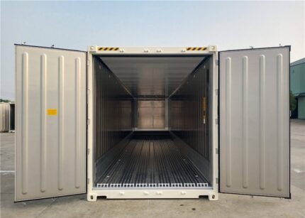 O nosso contentor de armazenamento de 20 pés com lateral aberta oferece um espaço seguro para armazenar todos os tipos de mercadorias. Os contentores com lateral aberta permitem um acesso fácil às mercadorias armazenadas, graças à sua abertura total em todo o comprimento. Este contentor de armazenamento tem uma porta de 4 folhas em todo o comprimento com proteção contra arrombamento. As folhas nas extremidades estão equipadas com uma maçaneta interna para destrancar.